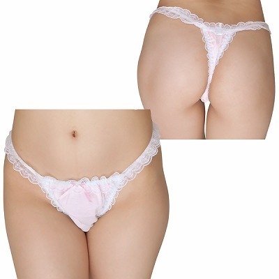 白レースコットンTバック ピンク ピンク