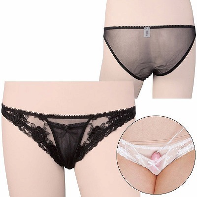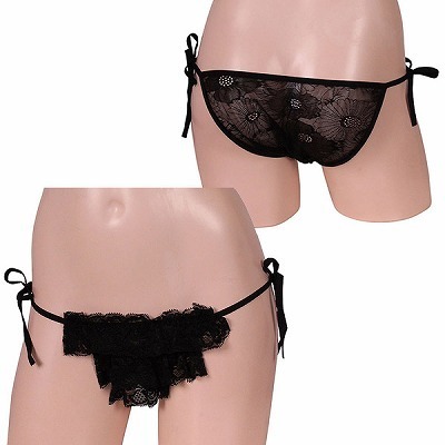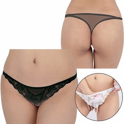 ローターポケット付きフラワーレースシースルーTバック ブラック ブラック
