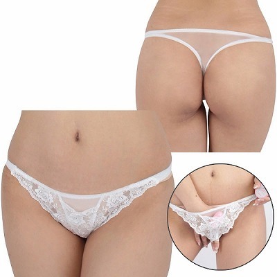 ローターポケット付きフラワーレースシースルーTバック ホワイト ホワイト
