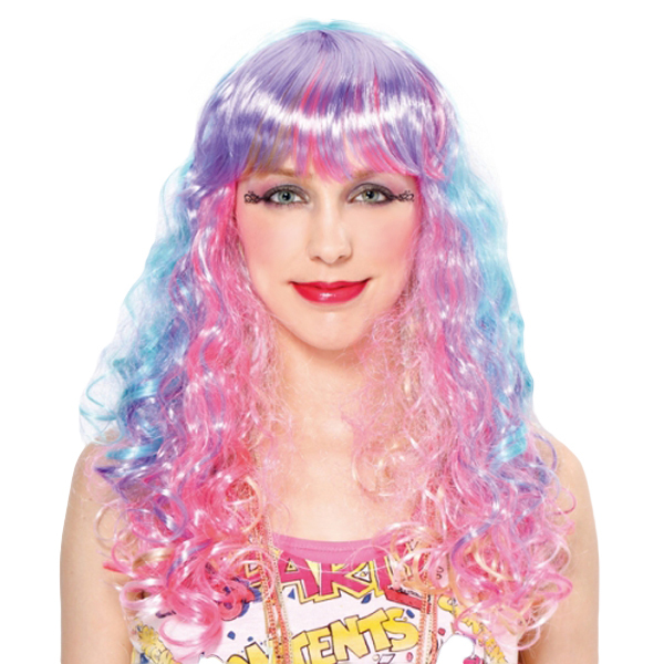 コスプレイベントやハロウィン、誕生日パーティなどで着ければ目立つこと間違いなし!人気シリーズ「セレブパーティーウィッグ」の新作、ポップなカラーが可愛いロングウェーブのウィッグ(レインボー)が登場♪ピンクや水色、パープルなど、複数色を混ぜ合わせた夢かわカラーウィッグ♪原宿系ファッションとも相性抜群◎