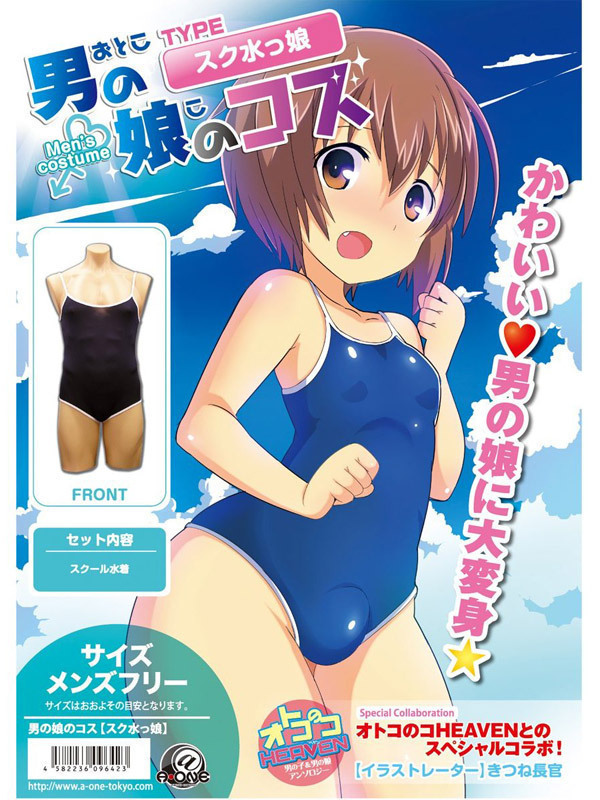 フリーサイズだから女装男子やスク水を着たい男の娘に最適!女性用と同じデザインのスク水男の娘「男の娘のコス」スク水っ娘。