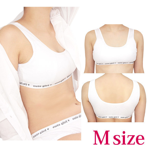 キュートガールに変身!純白リブ編み仕様のリアルなスポーツブラ単品(M)。